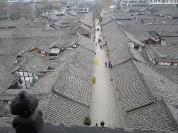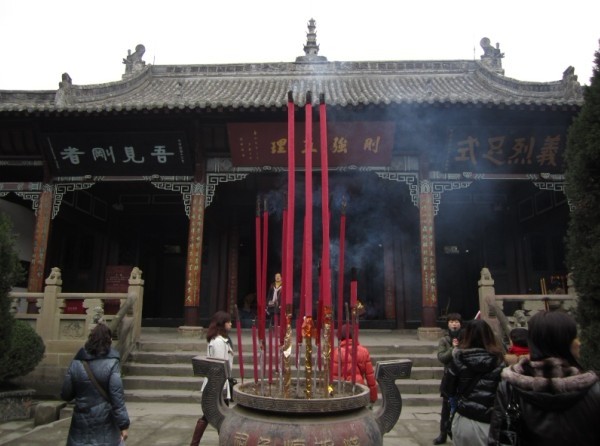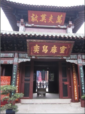 第二天,一縷陽光照進臥室,我醒了,大地在呼喚我們該起床了,該整裝待發去游覽這座古城了。說好九點中集合,導游拿著旗幟,召喚大家,開始出發啦。最先參觀的是清代四川貢院,據導游介紹,是清代科舉考試的考場,一進門,引入眼簾的是一道一米高的門檻,據說這道門檻在古代只有皇帝才可以從此門進入,它是地位、名利的象征,表示想要進入門檻很高,考生只能從側門進入。貢院的格局很明確,其設置以大門、龍門、明遠樓、至公堂、內龍門、聚奎堂(四川稱衡文堂)連接為中線主軸,由至公堂后之“簾”劃分前面為“外簾”考區,后面為“內簾”閱卷錄取工作區。考區以至公堂為中心,左右連接外簾場官工作房,再外為東、西文場,各設若干排考舍。看到古代考場的布置,仿佛看到一批批秀才正在為上考場而努力深思著,為自己十年寒窗苦讀的一絲希望掙扎著,科舉制度培育了一些人,卻毒害了一批人。導游一直在講述清代的科舉制度,而我此時已經把視線轉向了貢院一腳的海棠花,這是生平第一次看到實物,被它那淡淡的芳香給迷上了,深呼吸那幽香,仿佛進入世外桃源一樣,活在萬花從中,這樣的一角獨景,給緊張的考試氣氛帶來了生機盎然的景象,而它也成為游客拍照的景點之一。欣賞完清代貢院之后,導游帶我們來到了張飛廟,講述了張飛在歷史中的事跡,以及在閬中建張飛廟的原因。對張飛廟,我看到的是張飛深的民心的一面,他雖然脾氣暴躁,但卻驍勇善戰,心思細密,關心老百姓。歷史鑄造了這樣一位英雄人物,可當代又有幾人能名垂千史呢?人死了,卻魂沒死,永遠屹立在人們心中。最后參觀一景是“華光樓”,站在樓上,縱覽古城的感覺無限美好,古城所有的風光盡收眼底,真是“三面江光抱城廓,四圍山勢鎖煙霞”。太多情,卻無法用我泛濫的筆頭描寫出來,只能用李白曾說過的一句話來表達:“我見青山多嫵媚,料青山見我亦如是”。