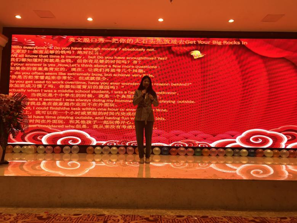 別出生面的英語脫口秀,純正的發(fā)音,流暢的表演,獲得臺下掌聲連連。
