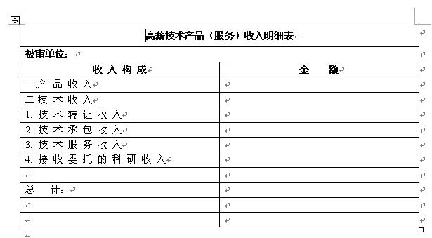 (二) 高新技術(shù)產(chǎn)品(服務(wù))收入明細(xì)表